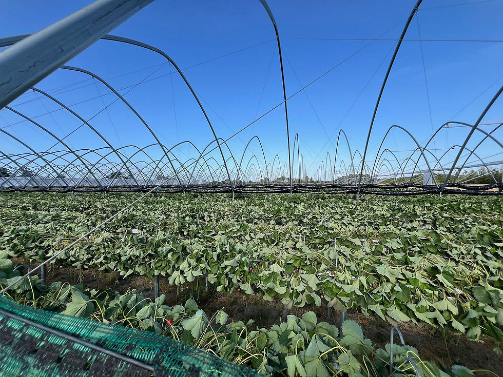 Behind the fruit and vegetable store are so many strawberry plants, cherry trees, potatoes planted, pea plants, etc. etc.