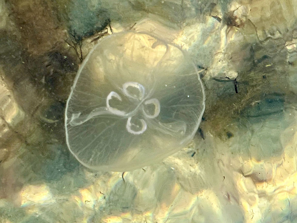 Again we have jellyfish. Pretty and thankfully not the stinging variety (at this time of year). Fun for kids (like Oskar and Mathilde)? Throwing them at each other.